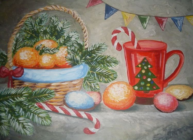 ![Романова-Никитенко Елена. Новогодний натюрморт]()
