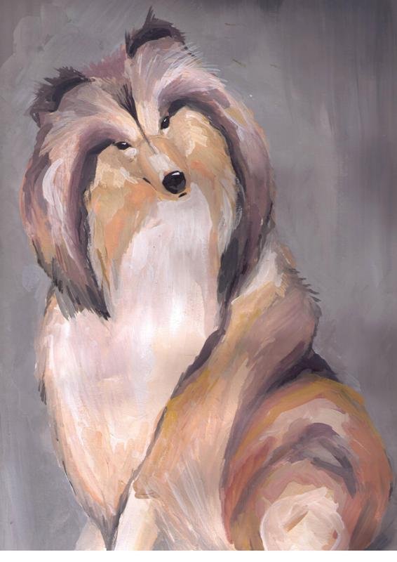 ![Собака гуашью]()