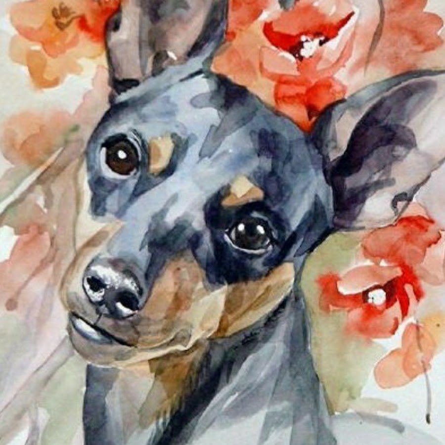 ![Доберман акварелью]()