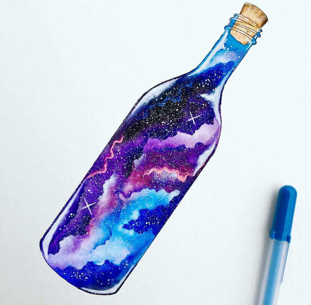 Бутылка акварелью