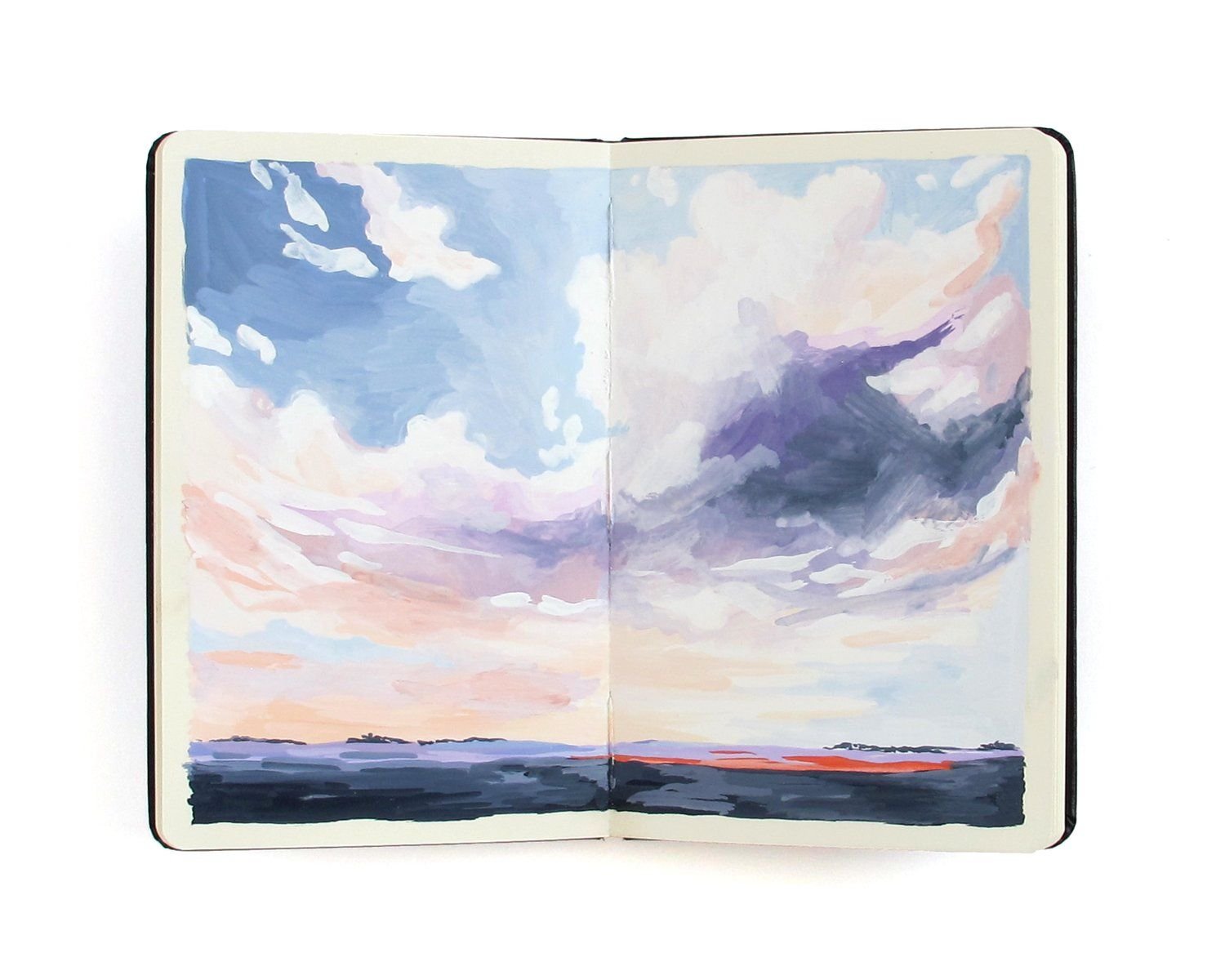 ![Лёгкие рисунки акварелью в скетчбуке]()