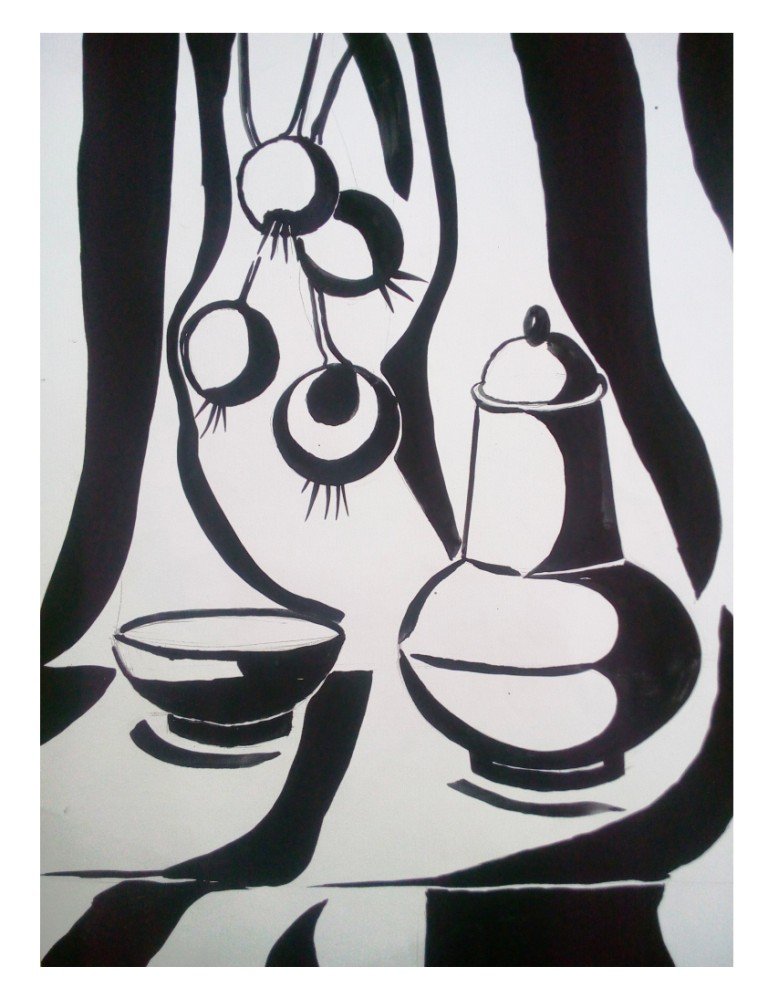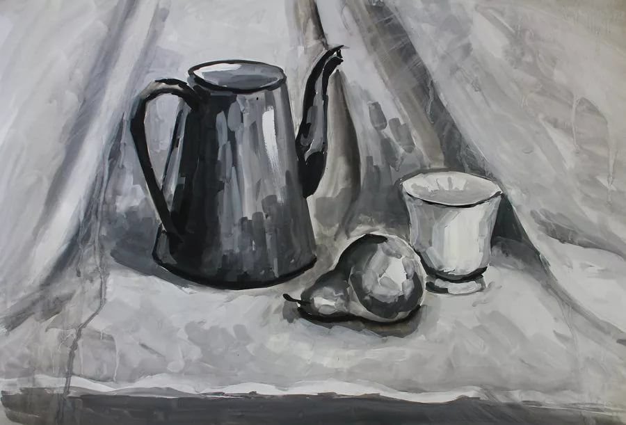 ![Черно белый натюрморт гуашью]()