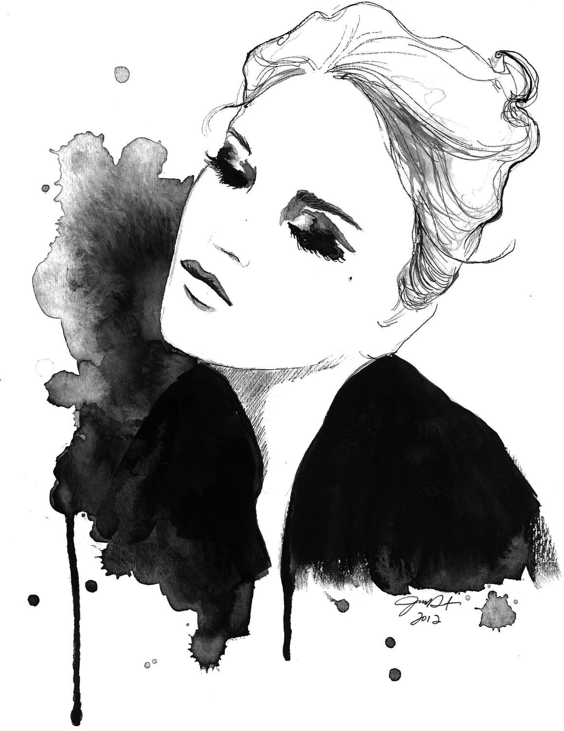 ![Фэшн иллюстрация тушью]()