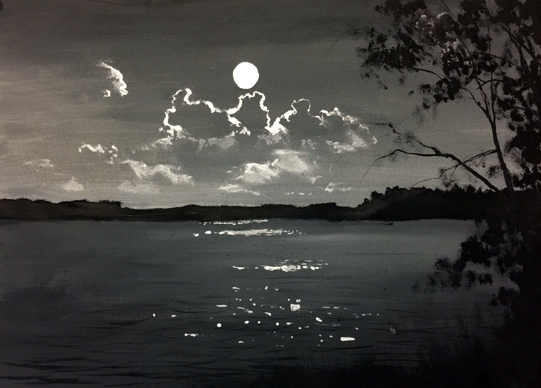 Чёрно-белый пейзаж гуашью