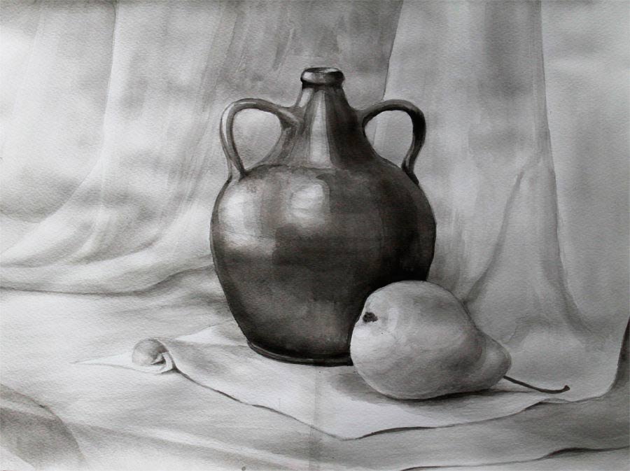 ![Гризайль акварель Академический натюрморт]()
