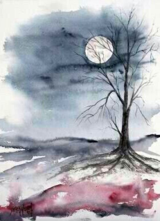 ![Мрачный пейзаж акварелью]()