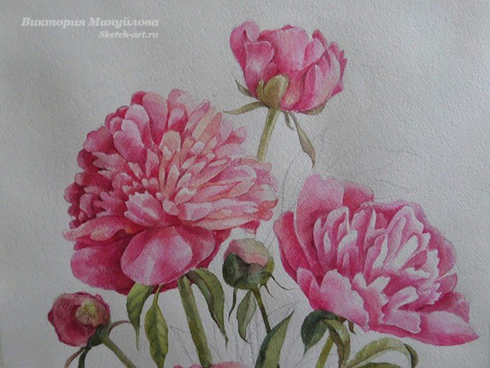 Пионы — красивые и нежные цветы, которые поражают своей изящностью и очарованием. Используя гуашь, художник может передать эту легкость и воздушность пионов на бумаге. Нежные лепестки пионов будто парят в воздухе, создавая ощущение легкости и эфемерности. Гуашь отлично преображает рисунок, добавляя ему яркости и насыщенности. Таким образом, рисунок пионов, выполненный гуашью, становится настоящим произведением искусства, которое восхищает своей легкостью и изящностью.