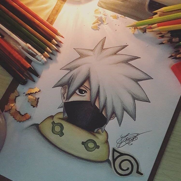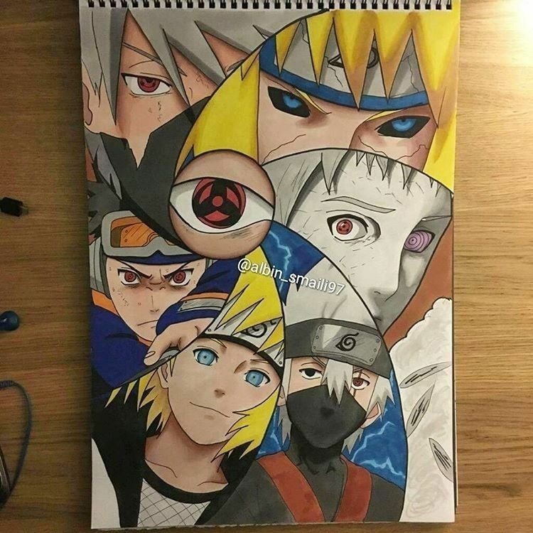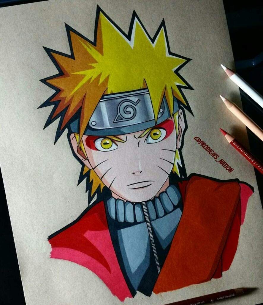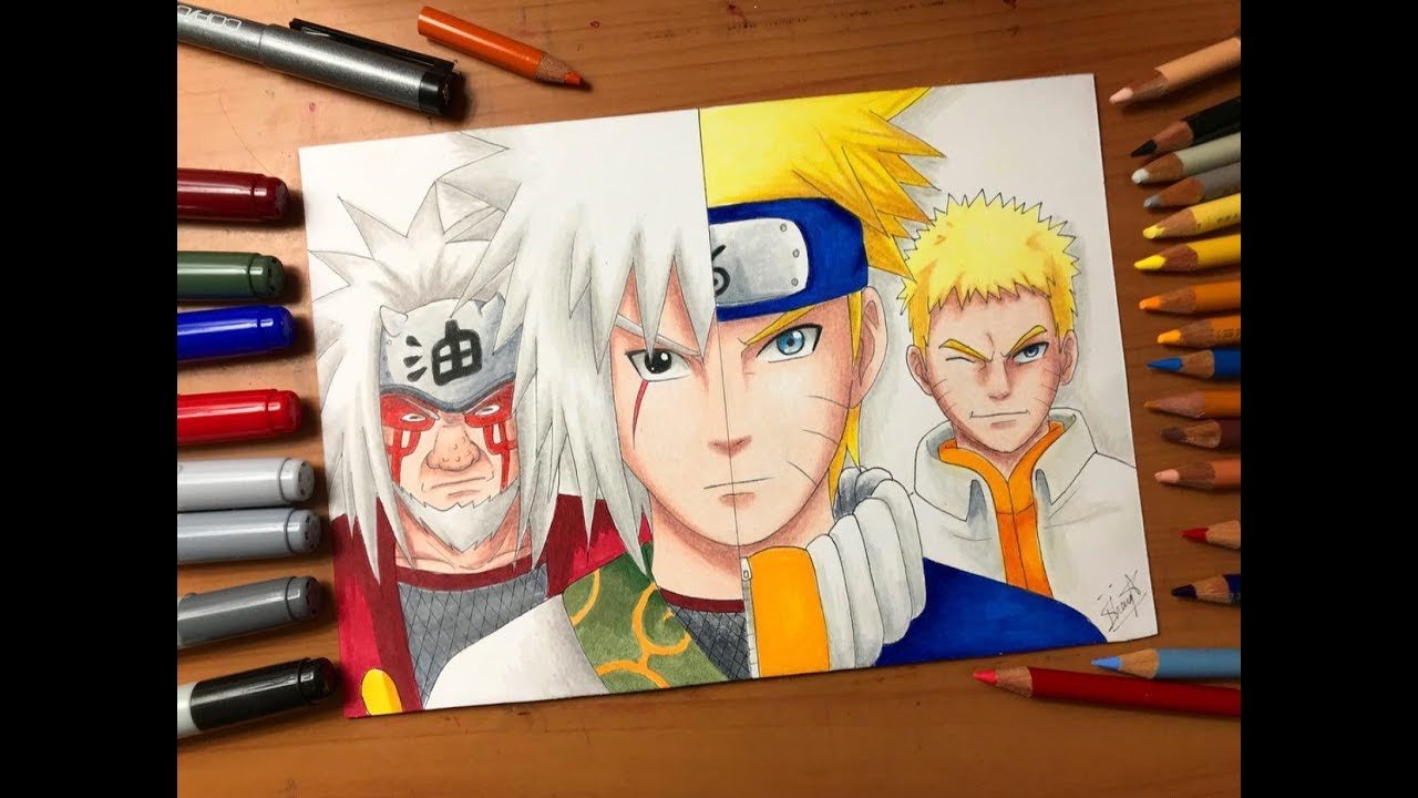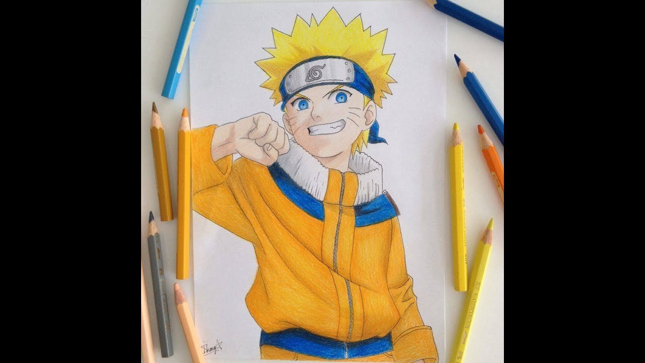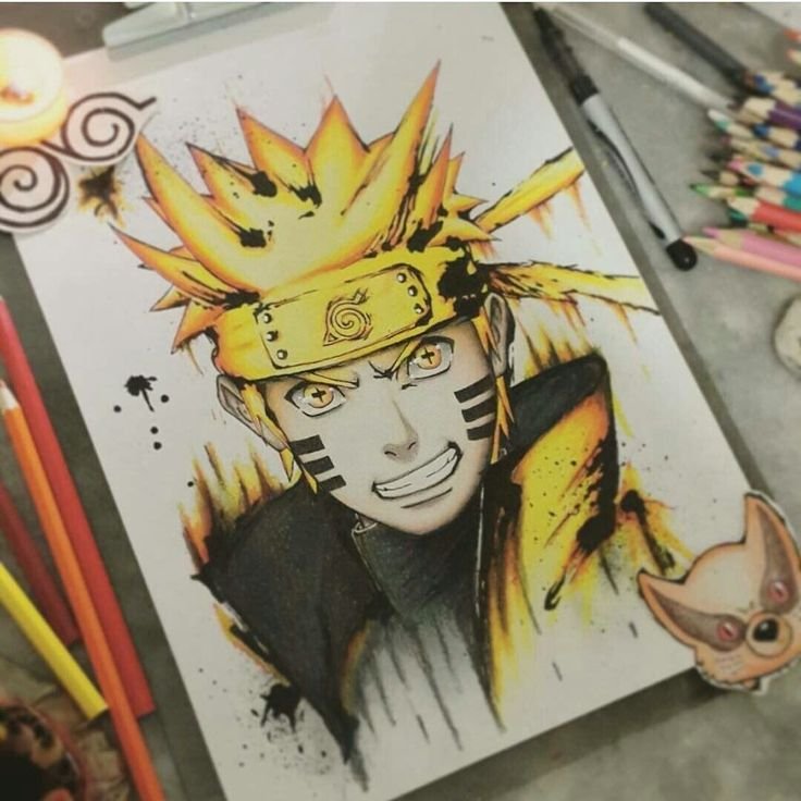 ![Аниме цветными карандашами Наруто]()