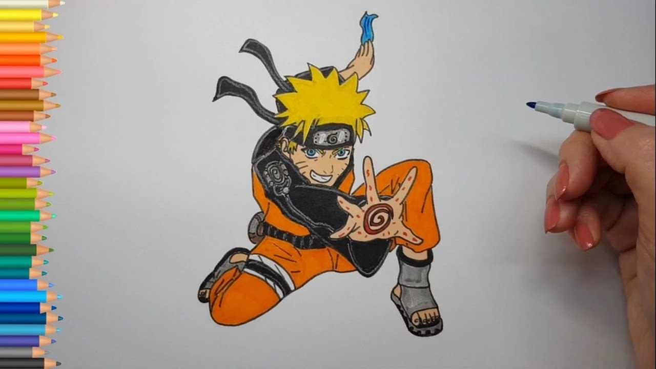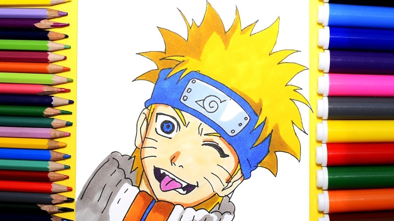 ![Аниме цветными карандашами Наруто]()