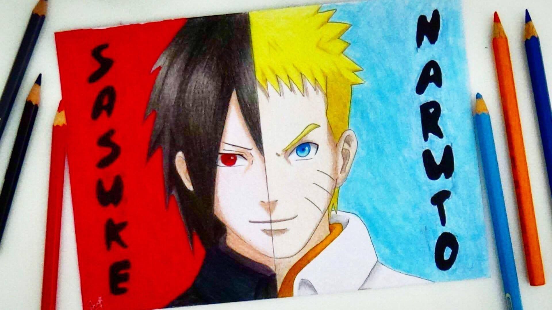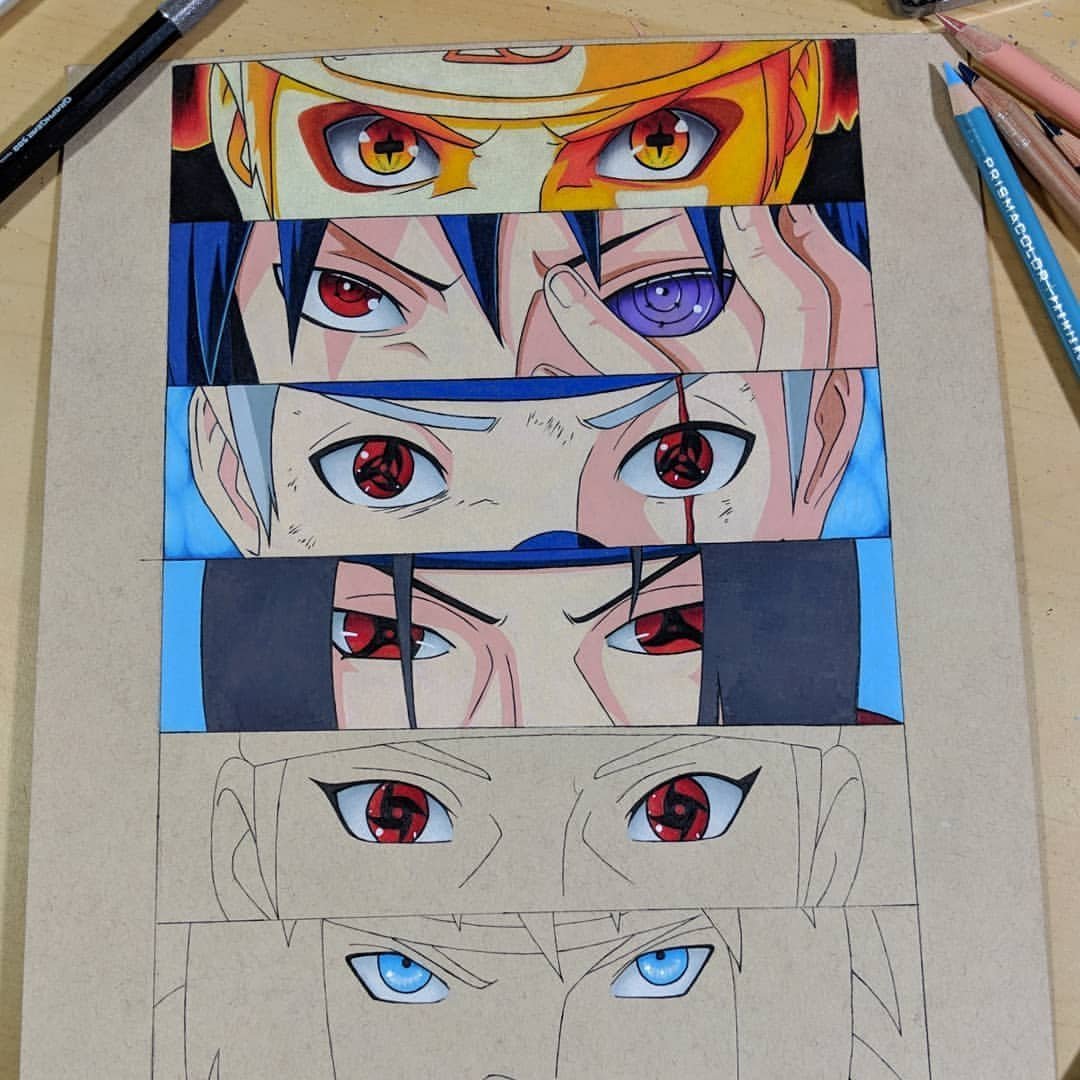 Наруто цветными карандашами