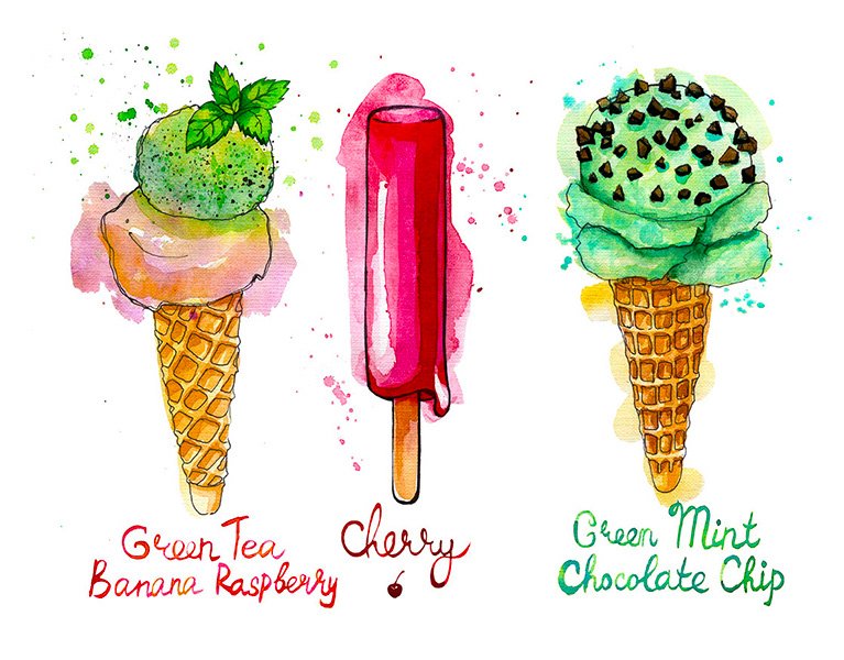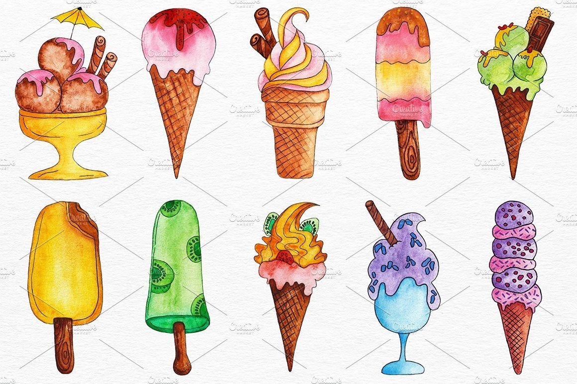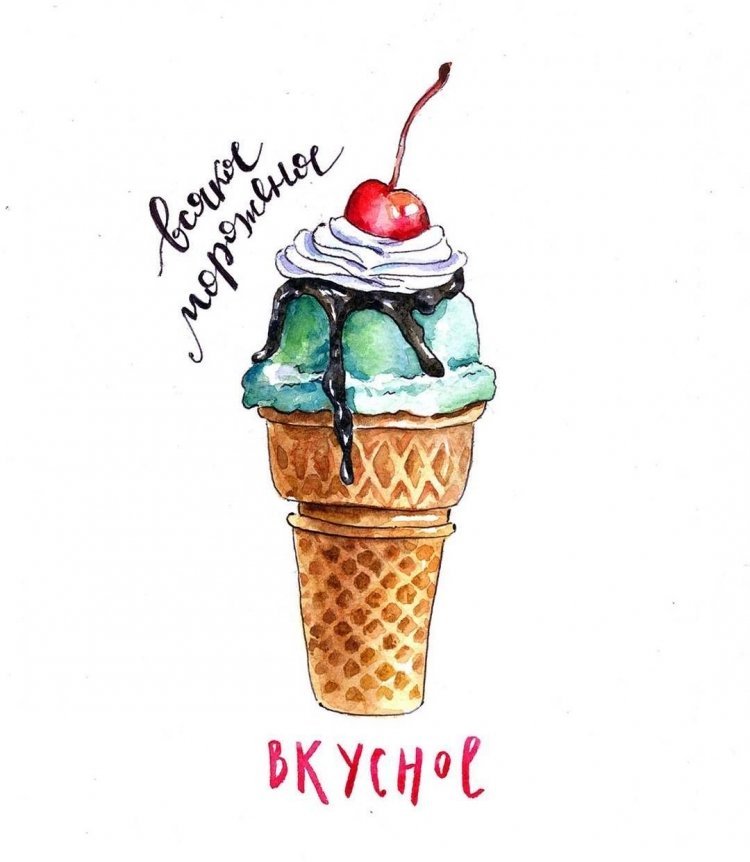 ![Акварельный скетч мороженое]()