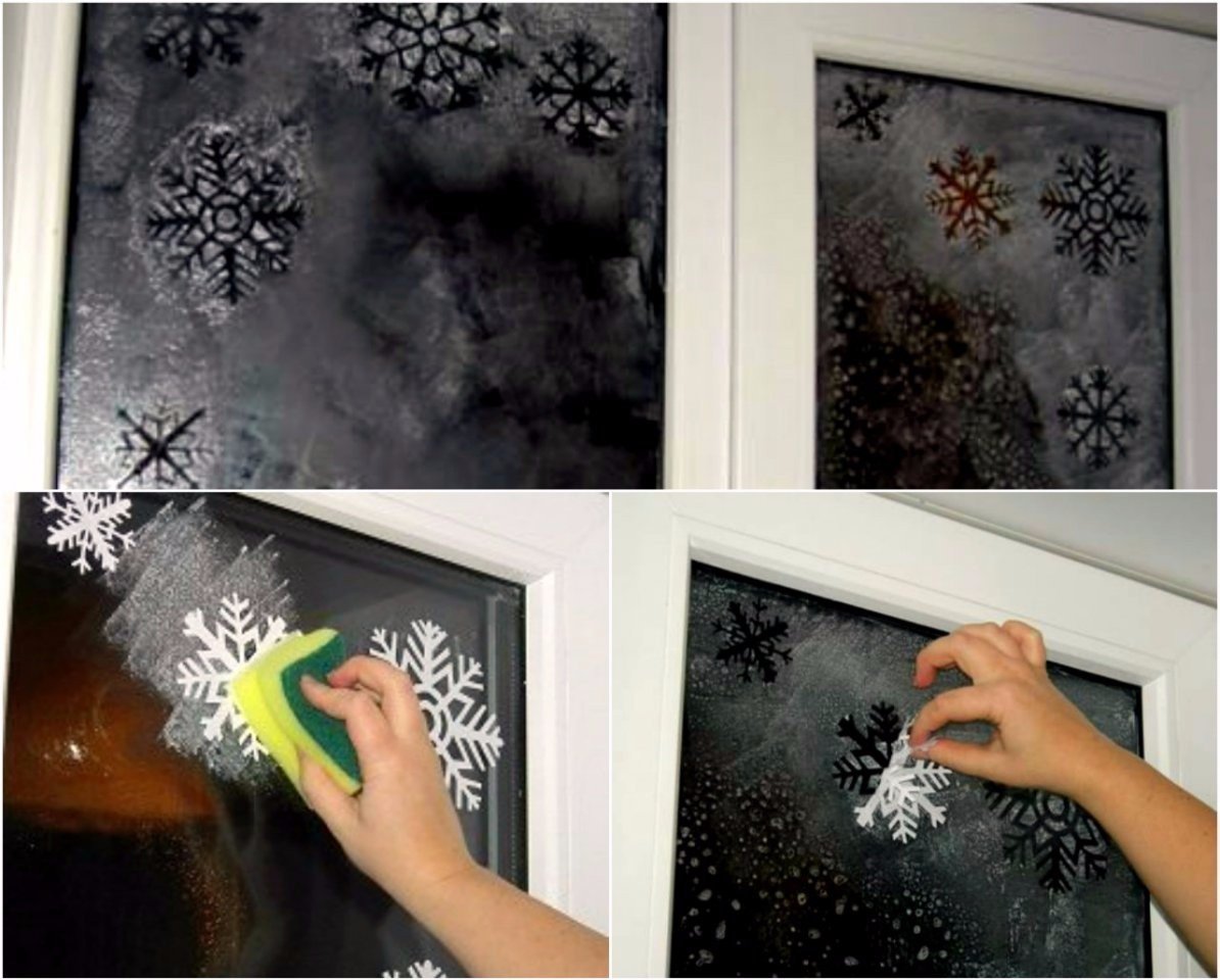 ![Новогоднее украшение окон зубной пастой]()