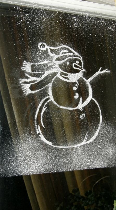 ![Новогодние рисунки на окнах]()
