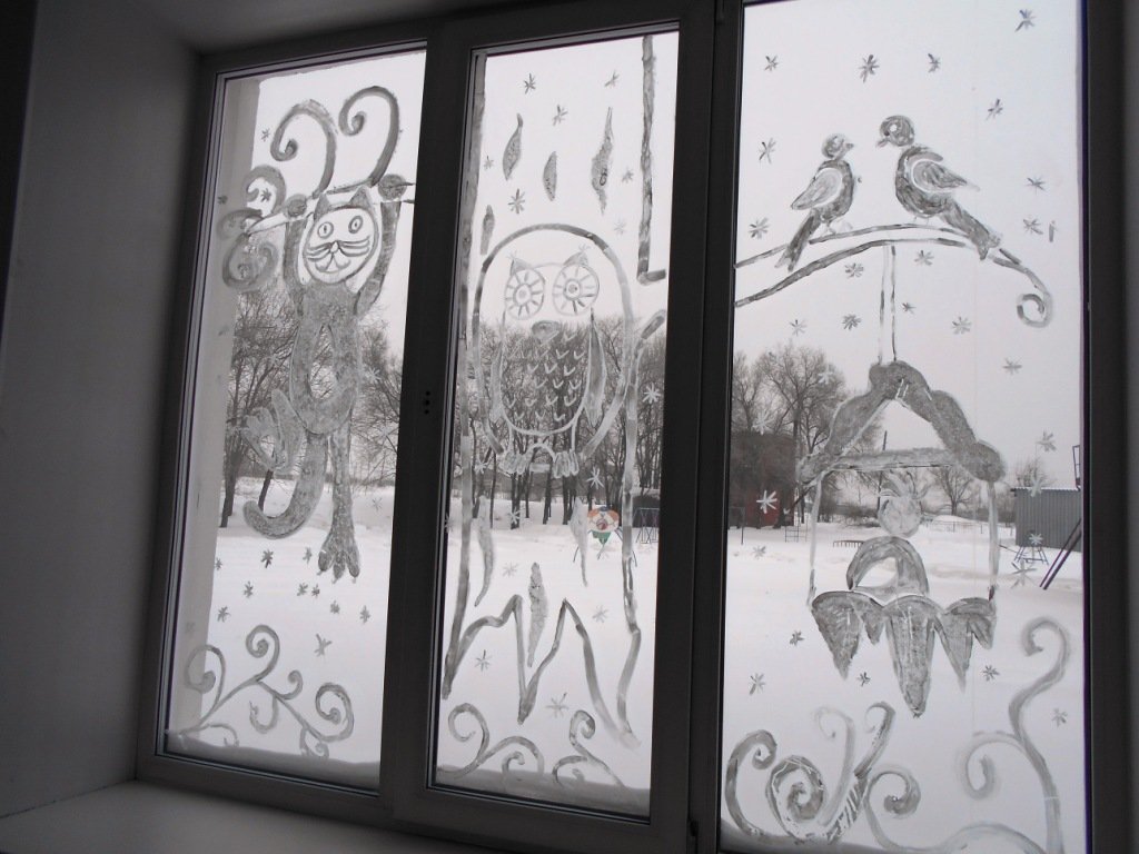Рисунки на окнах зубной пастой