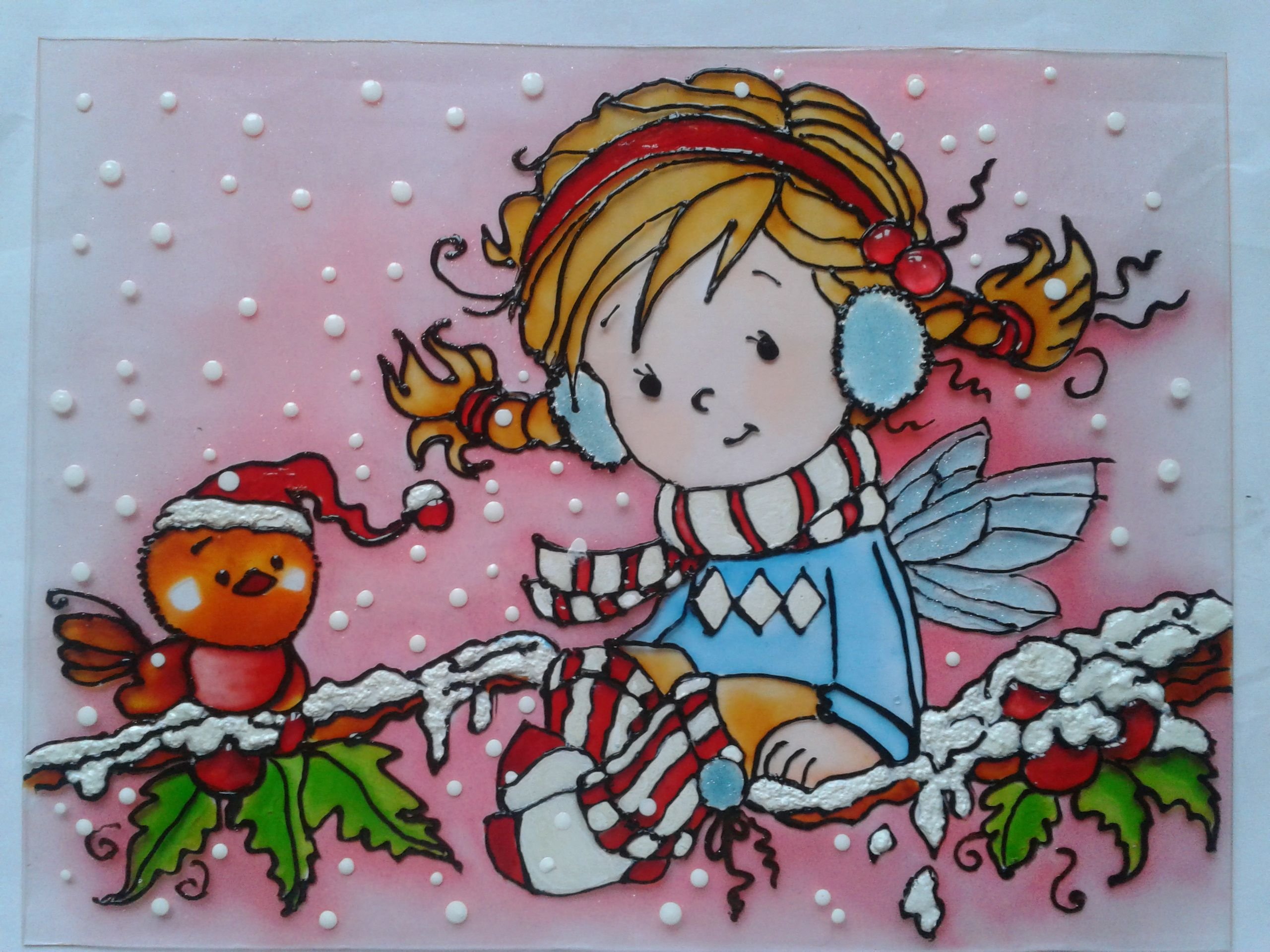 Снегурочка на окне гуашью
