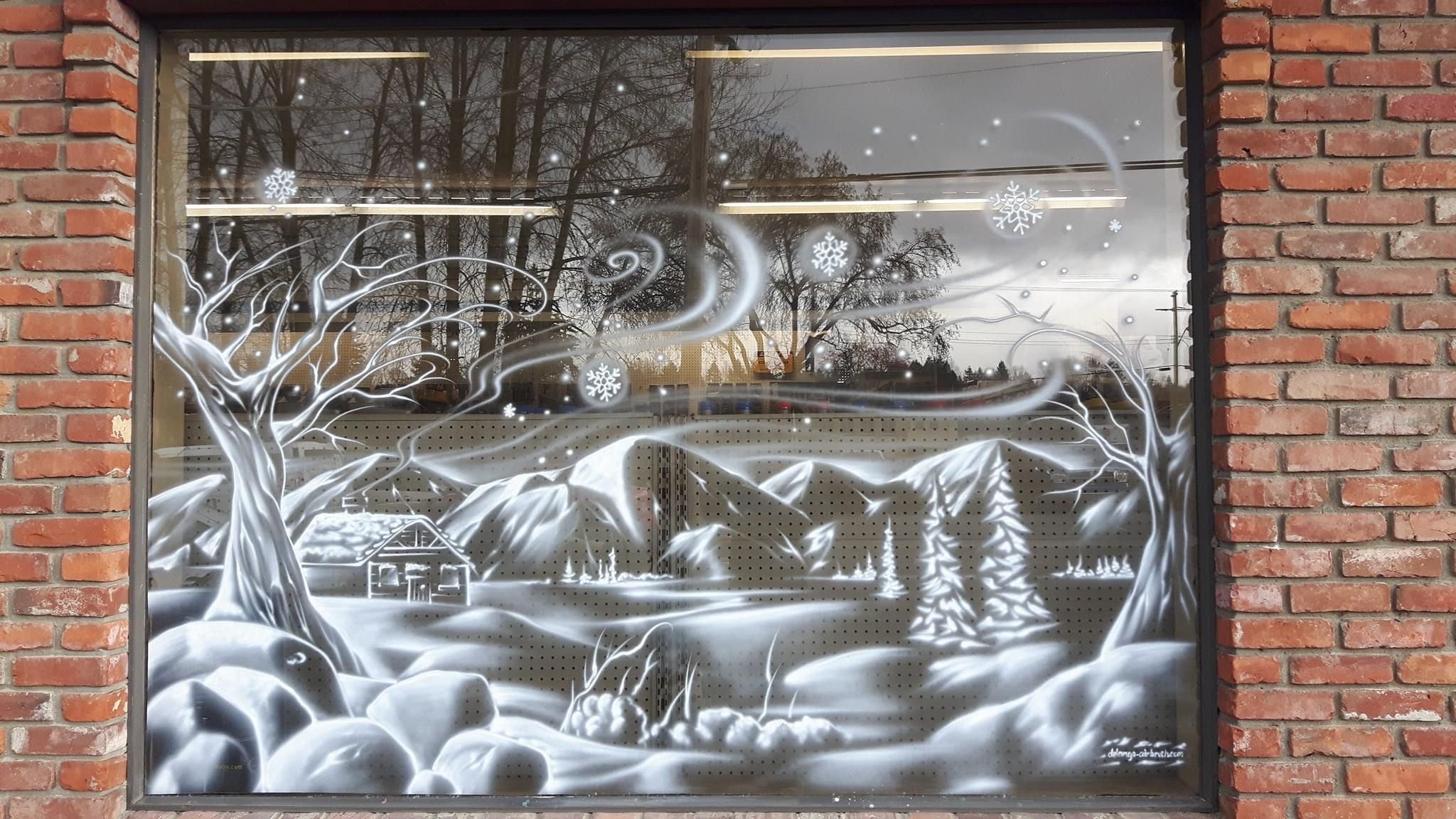 ![Новогодняя роспись на окнах в школе]()