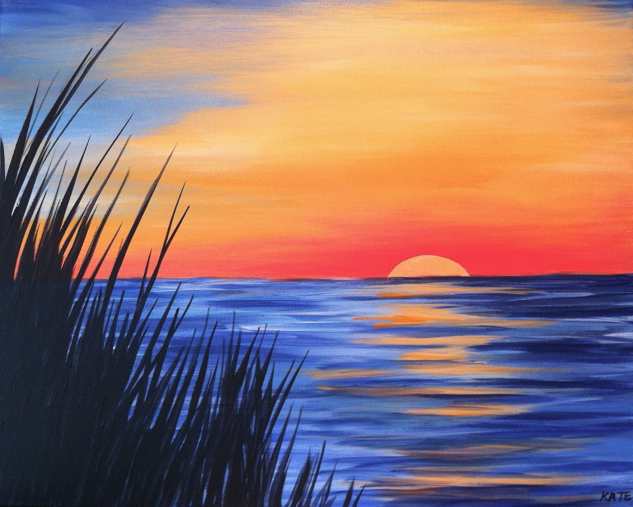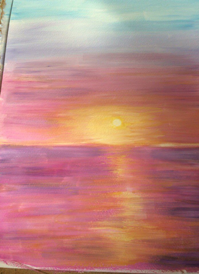 Закат солнца гуашью