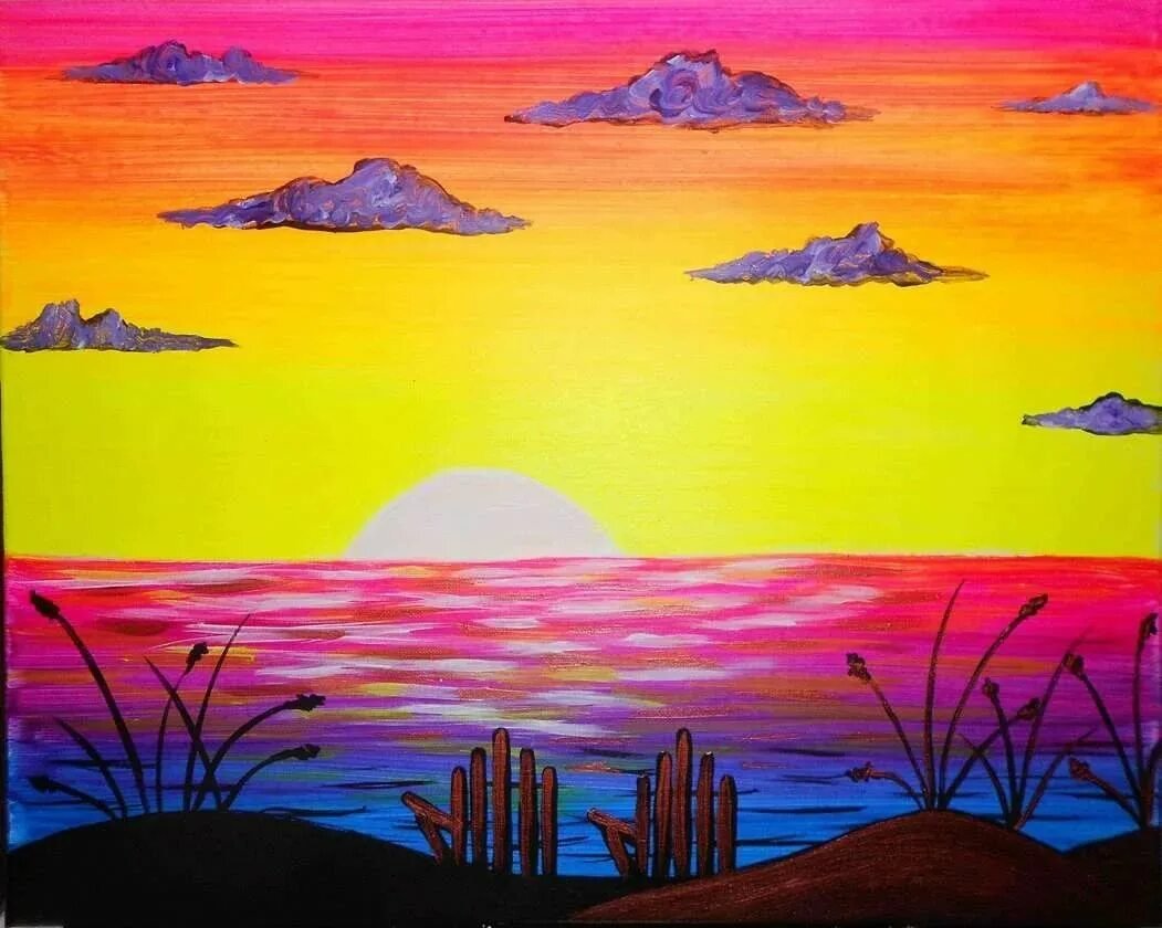 Закат красками для детей