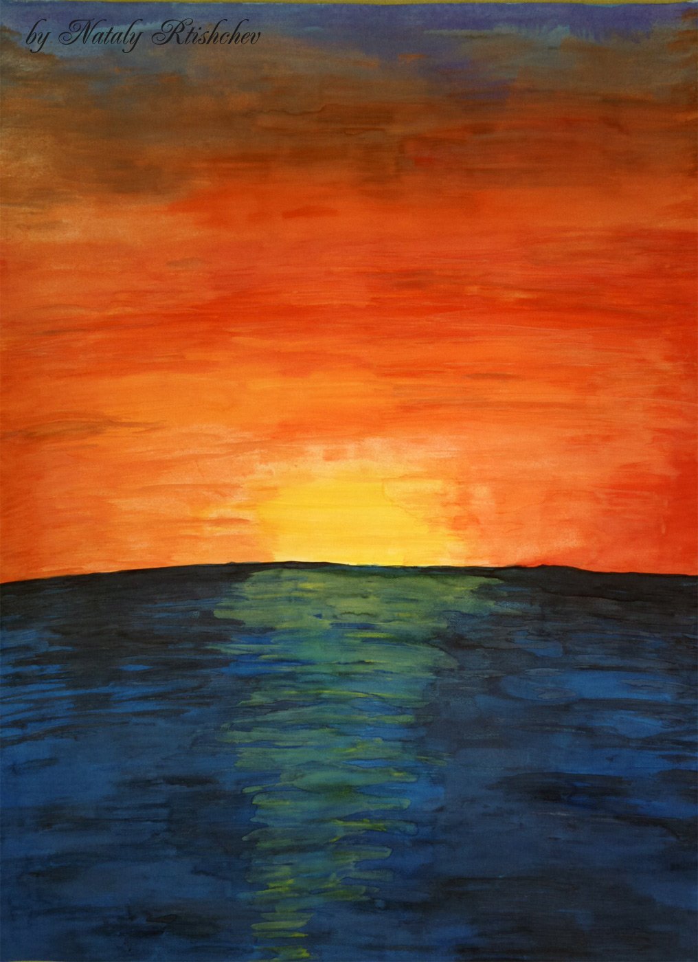 ![Закат акварельными красками]()