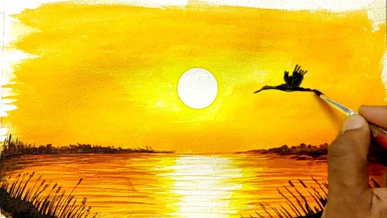 ![Урок рисования закат для детей]()