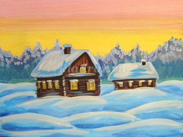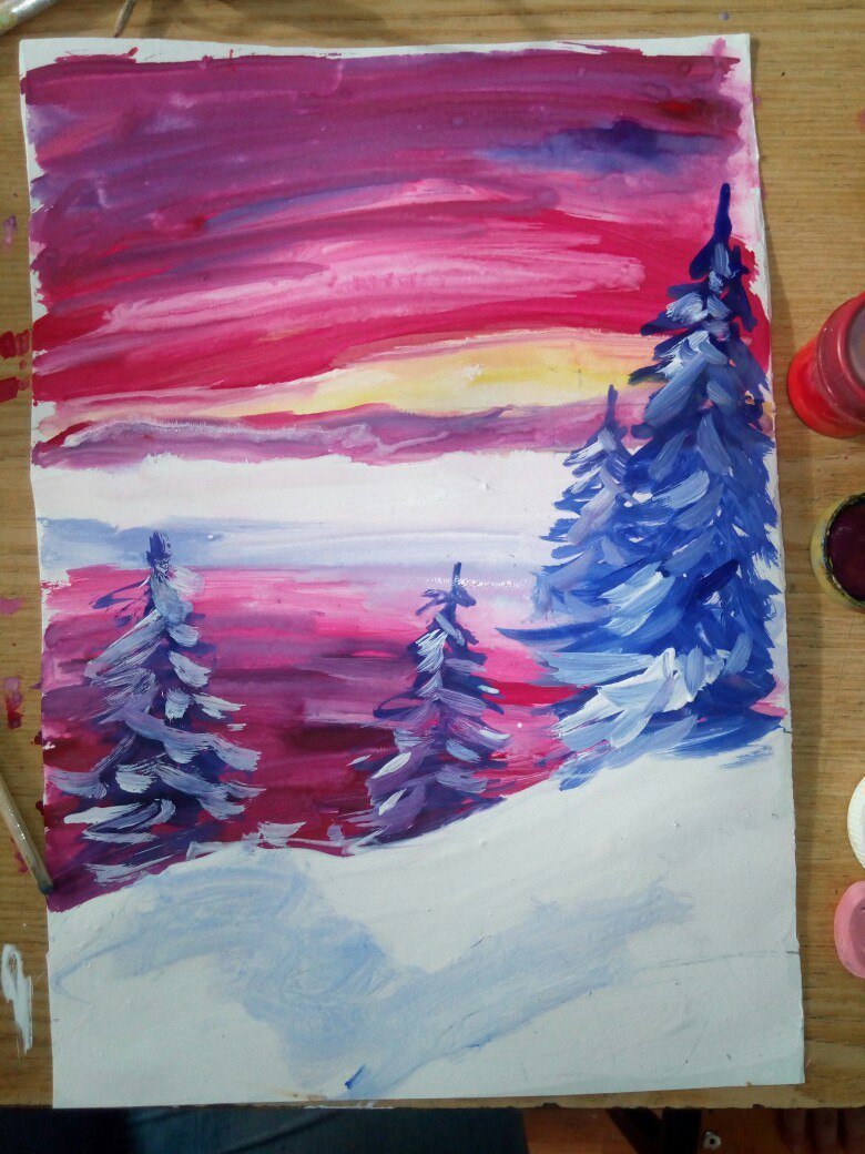 ![Мастер класс по рисованию зимний пейзаж гуашью]()
