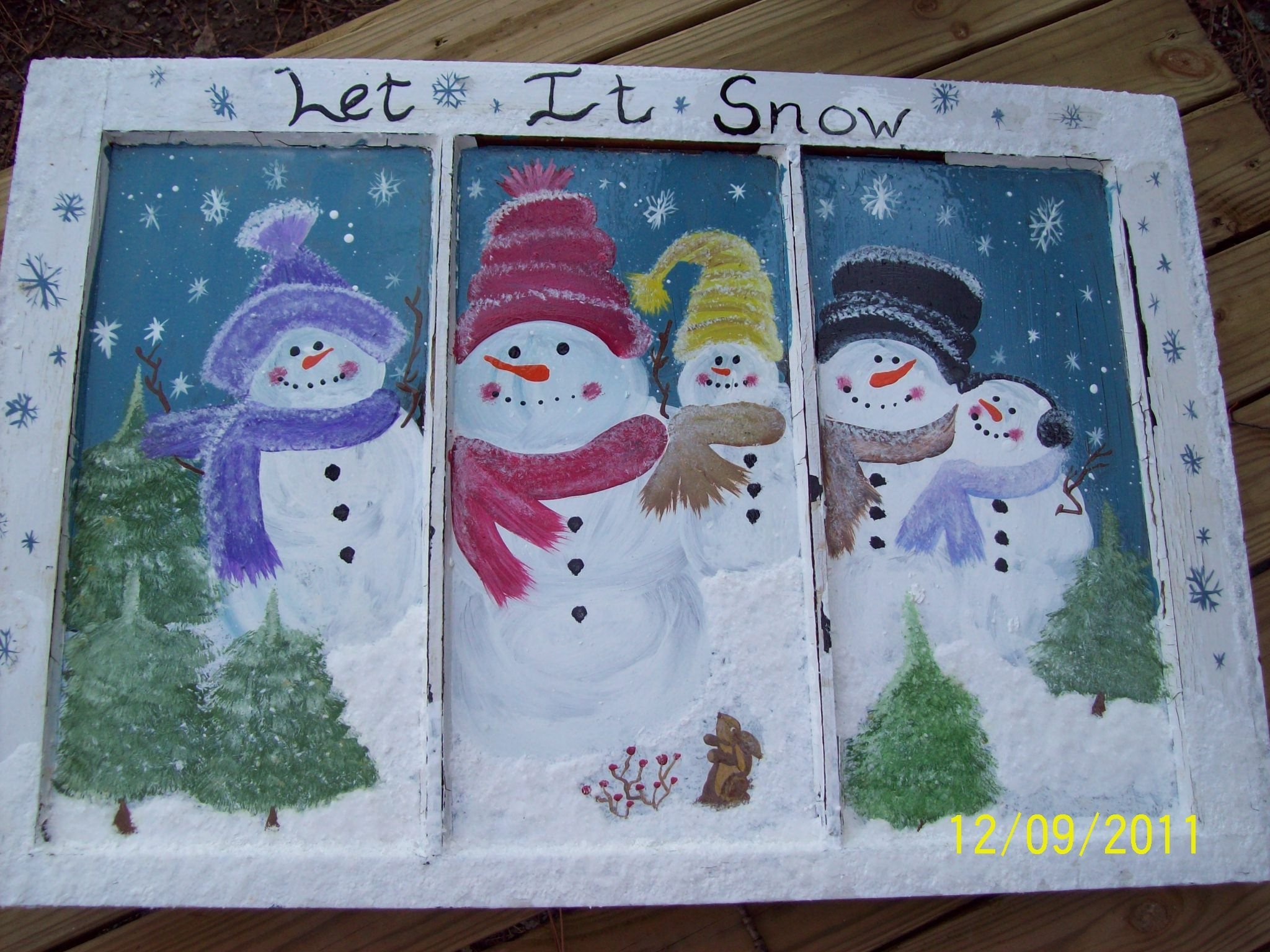 ![Снеговик на стекле гуашью]()