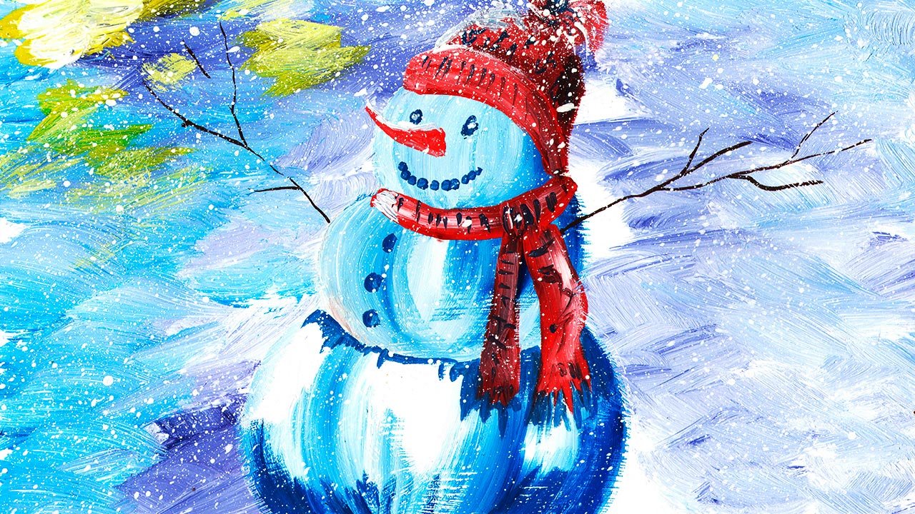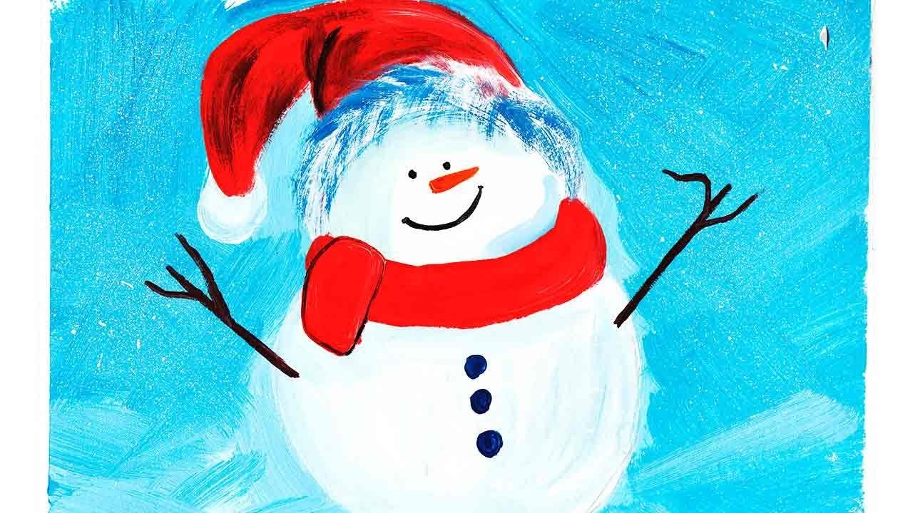 Снеговик рисунок красками