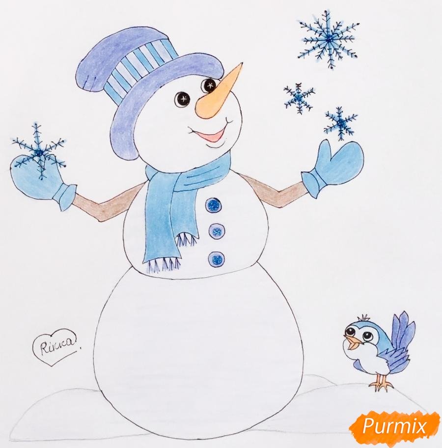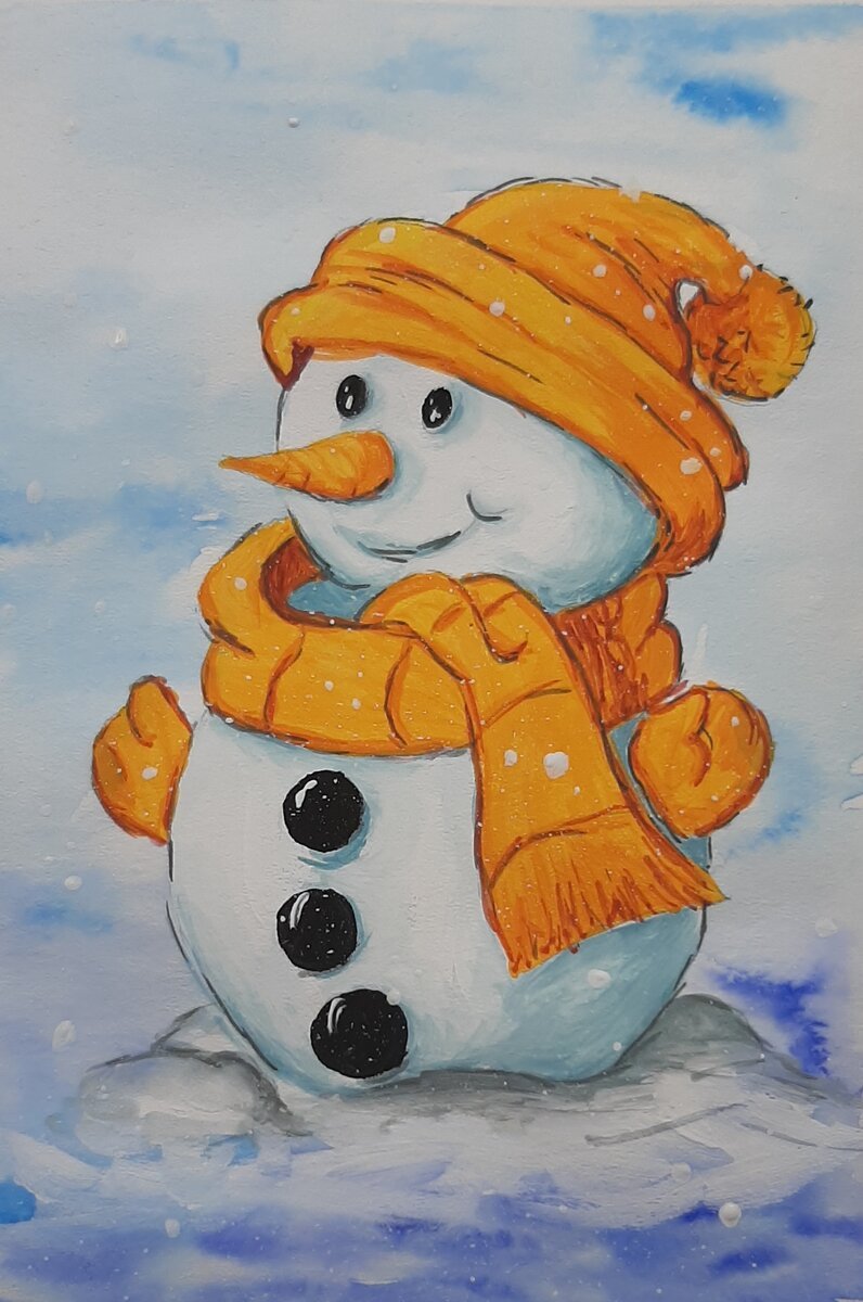 ![Снеговик рисунок фломастерами]()