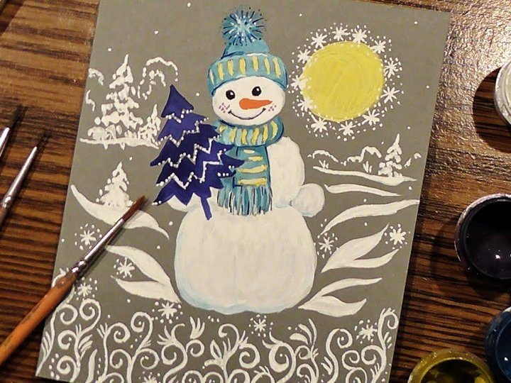 ![Снеговик гуашью]()