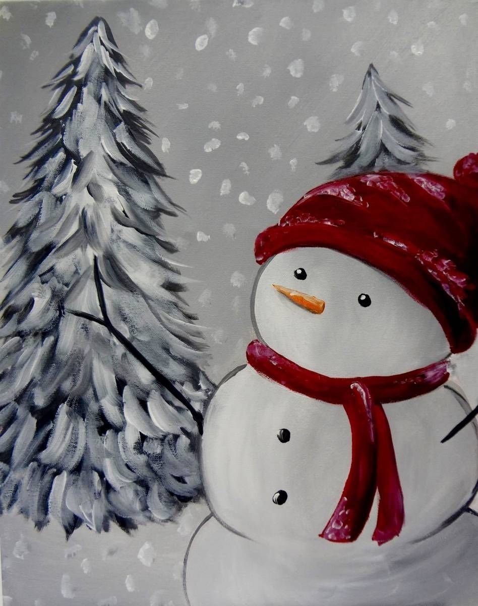 ![Снеговик акрилом на холсте]()