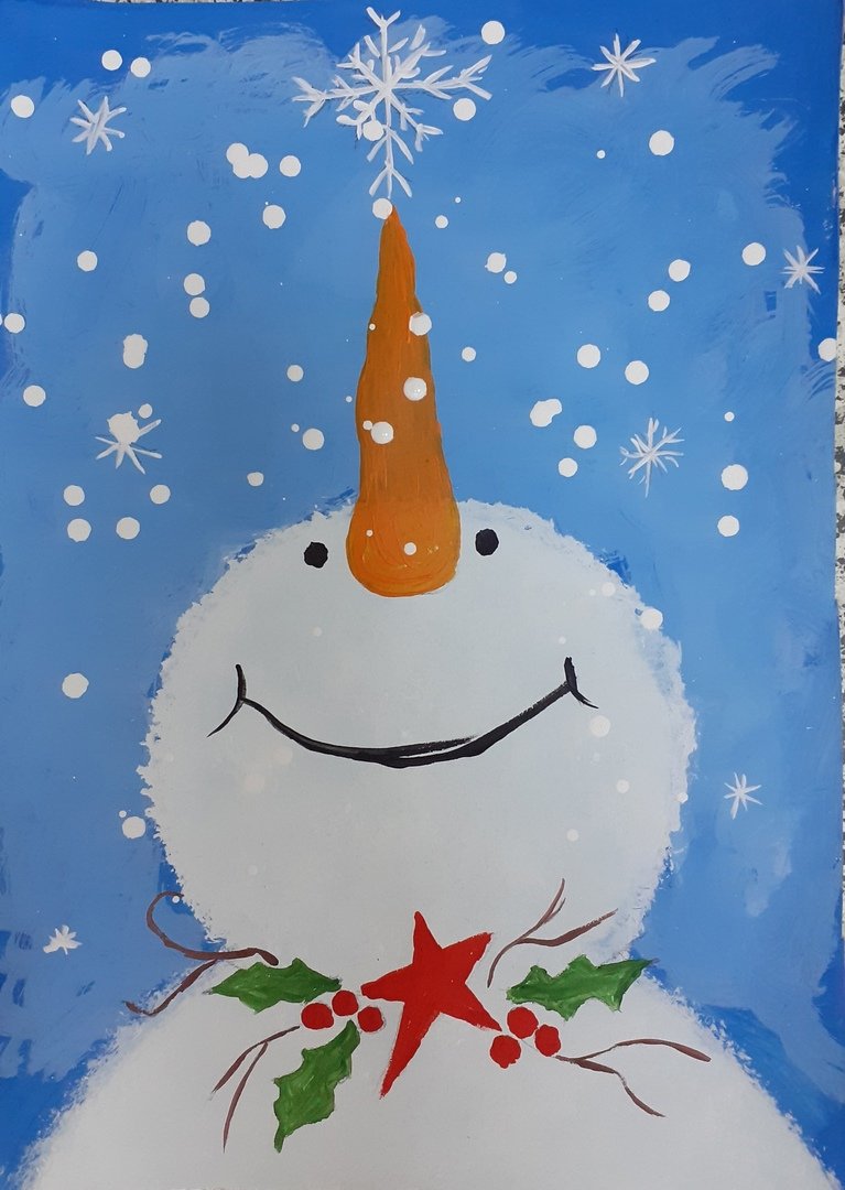 ![Снеговик рисунок красками]()