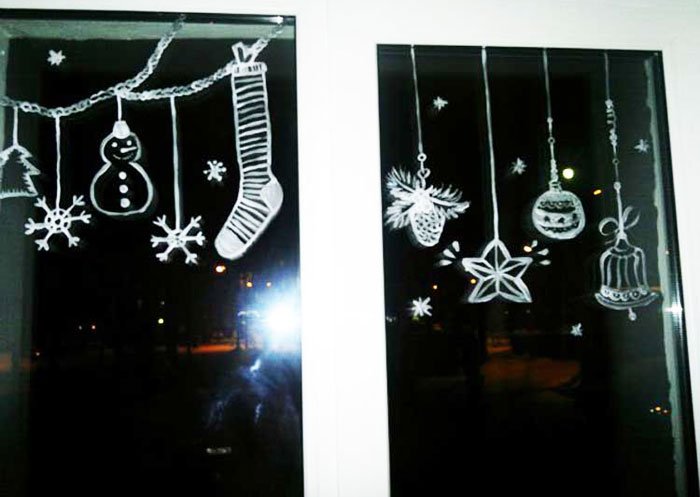 ![Новогодние рисунки на окнах]()
