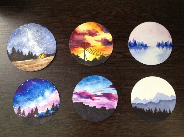 Круглые картины гуашью