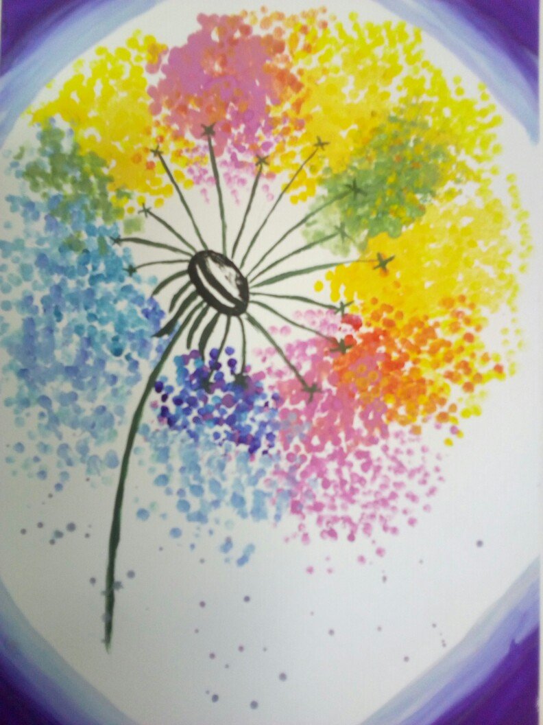 ![Рисование ватными палочками одуванчик]()