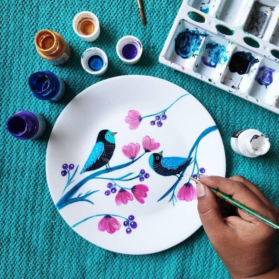 Рисование на тарелках акрилом