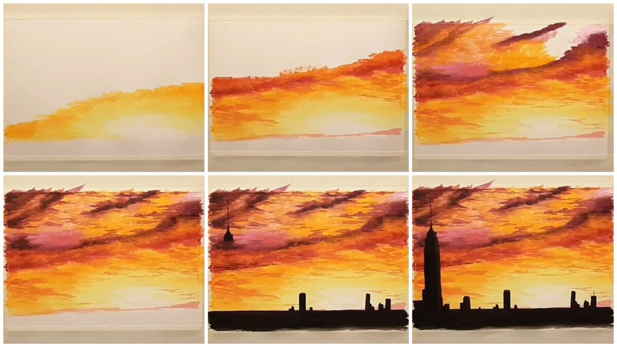 ![Этапы рисования заката]()
