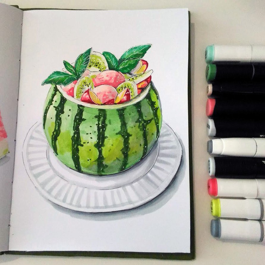 ![Аня Белоусова акварельный скетчинг Арбуз]()