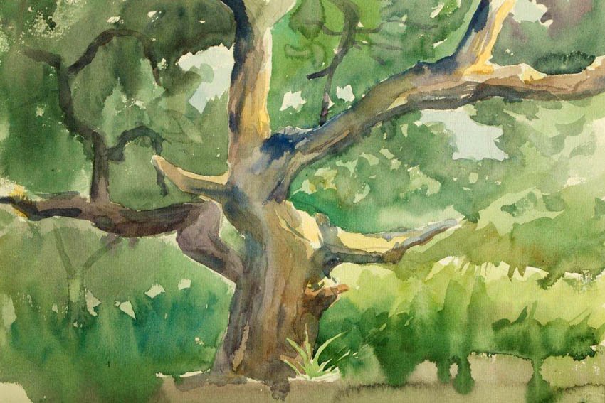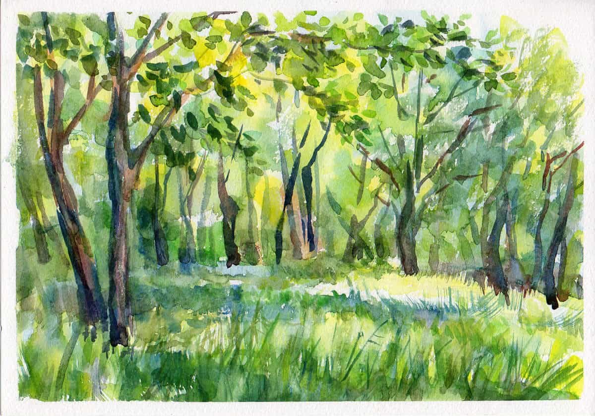 Пленер акварель деревья