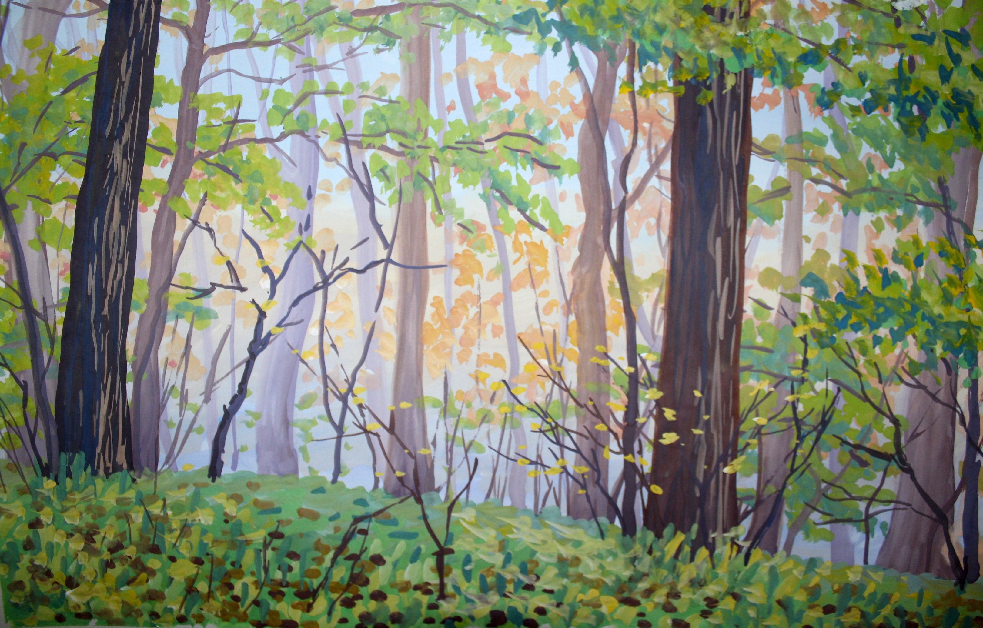 ![Лес гуашью]()