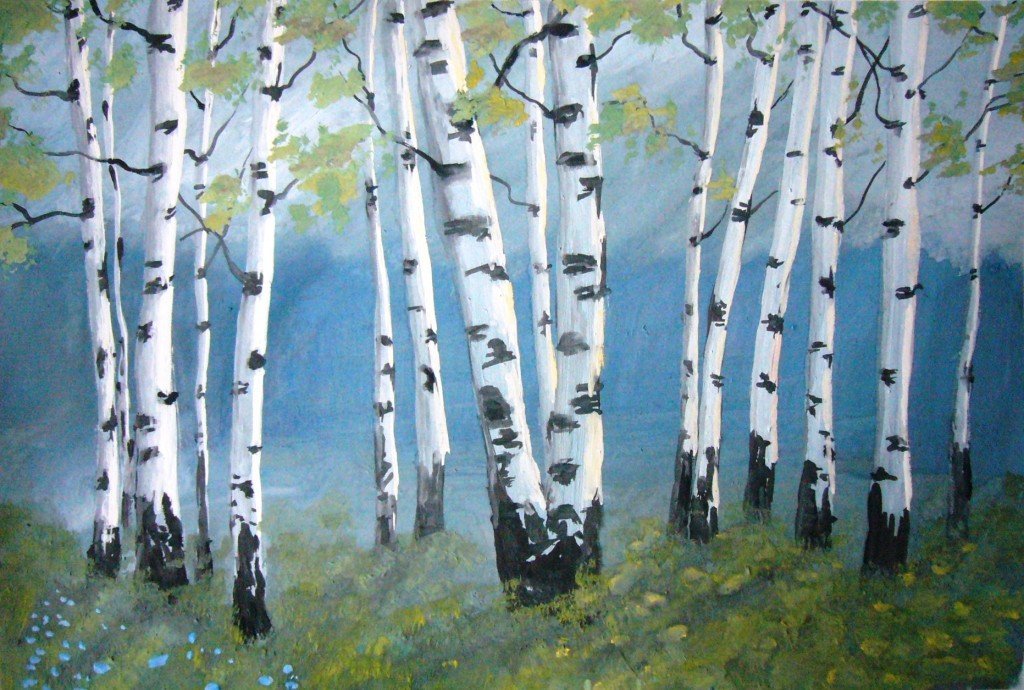 ![Березовая роща гуашь для детей]()