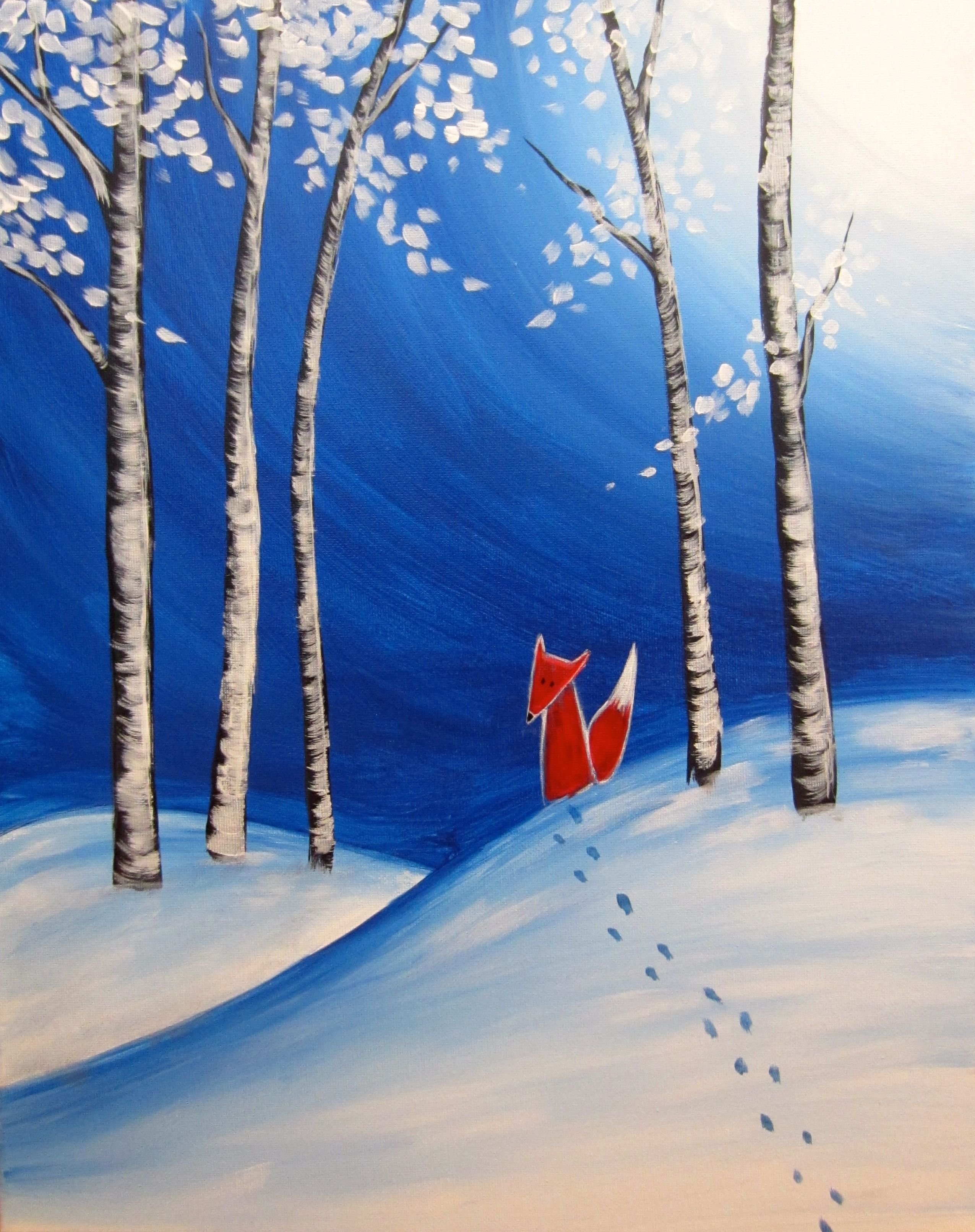 ![Простой зимний пейзаж гуашью]()