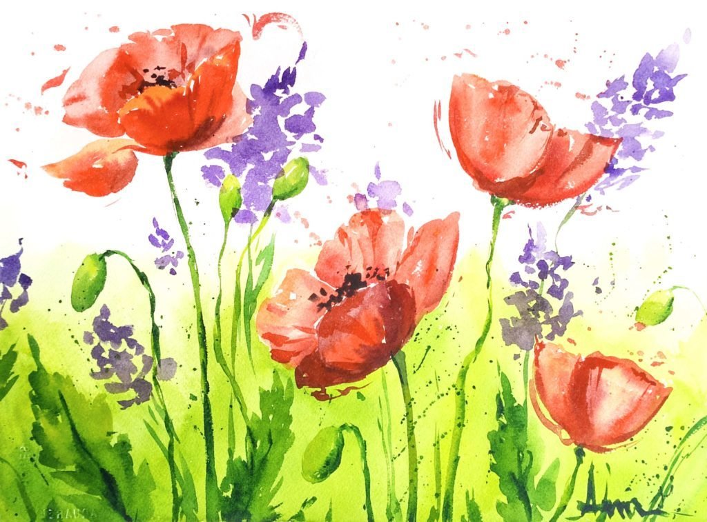 ![Маки цветными карандашами]()
