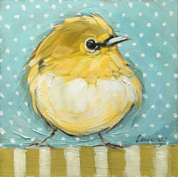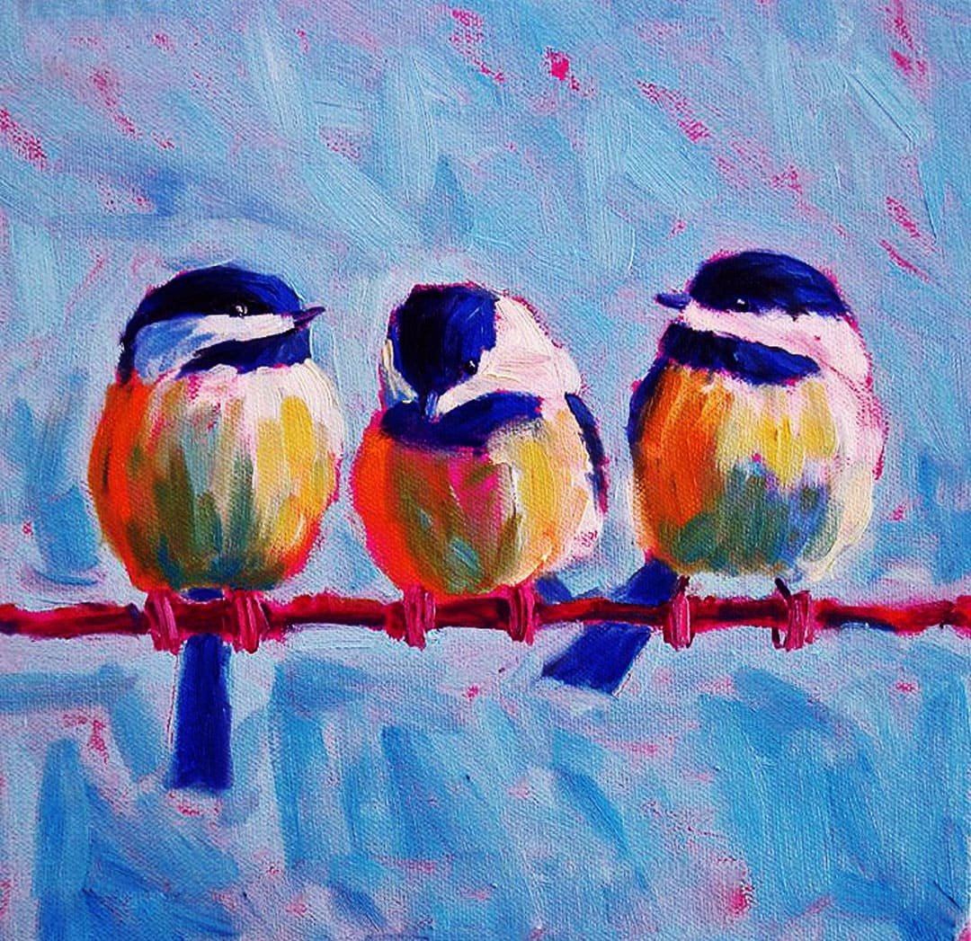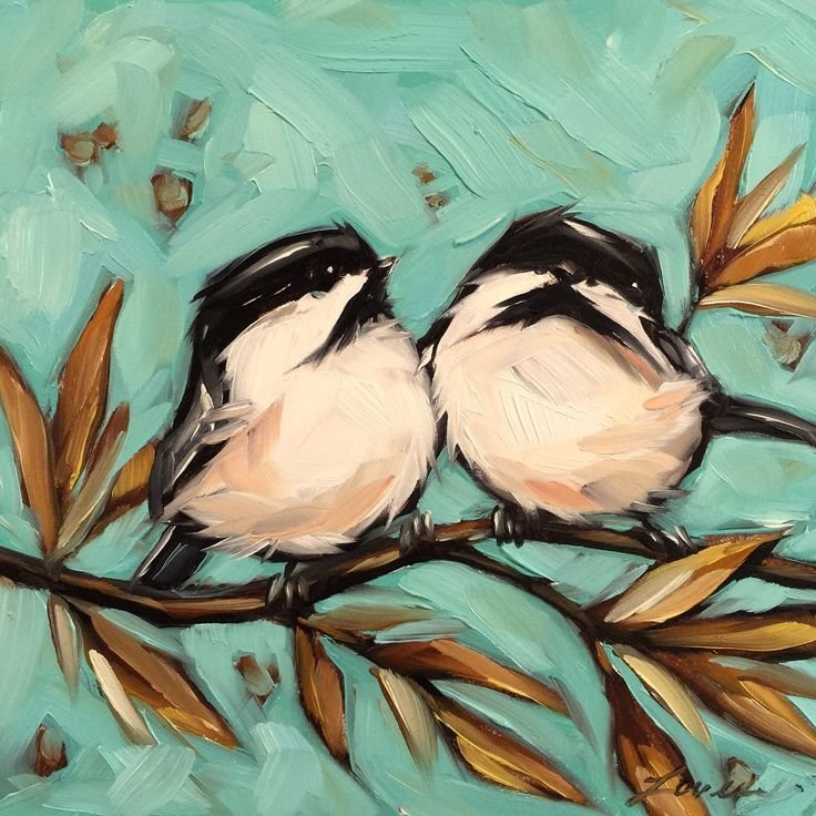 ![Птички маслом на маленьком холсте]()