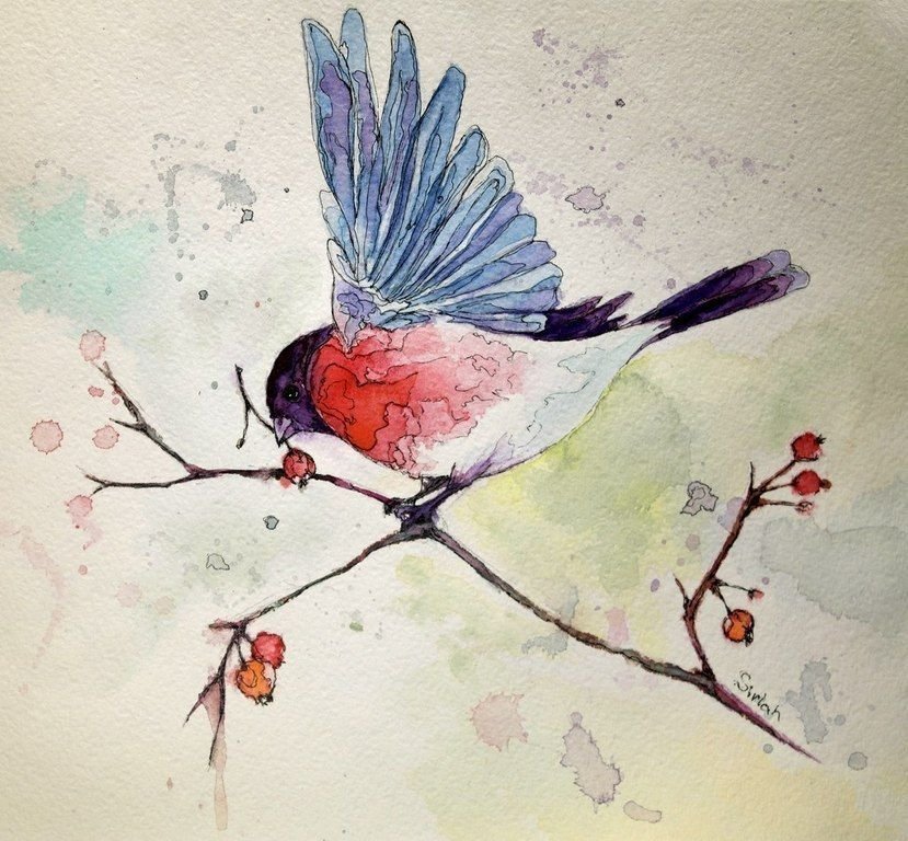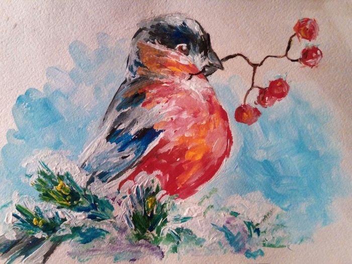 ![Снегирь красками]()