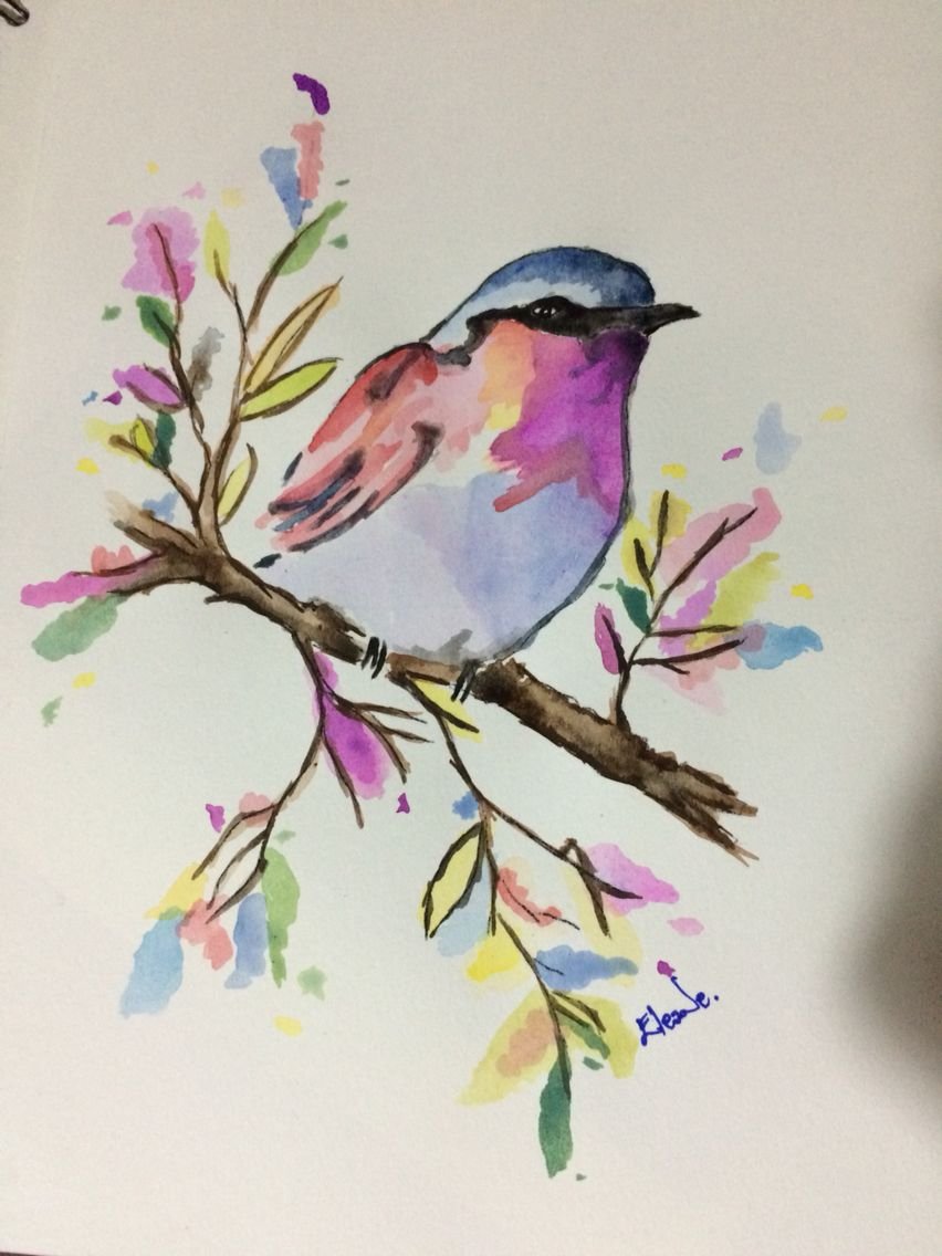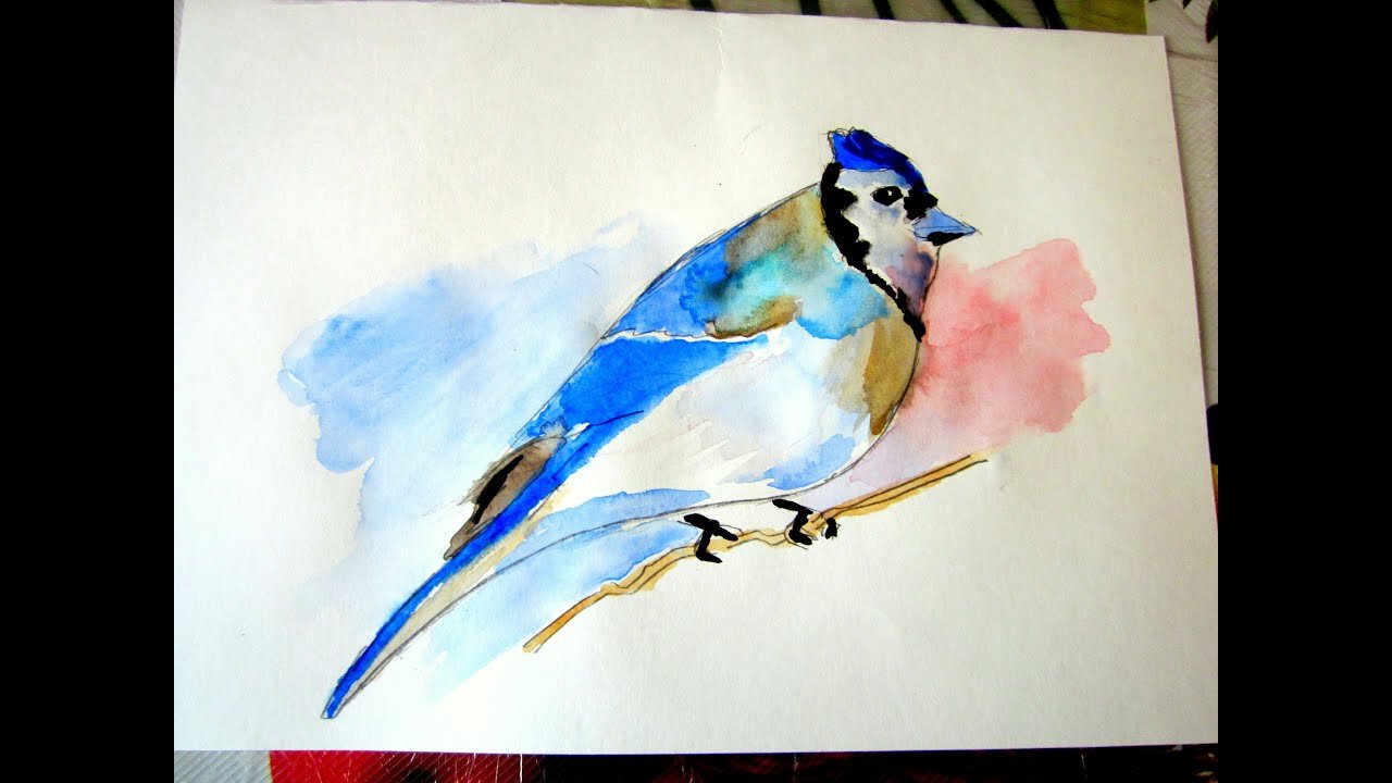 Рисование акварелью птицы