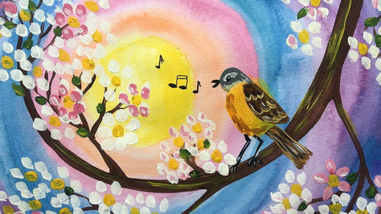 Рисование птиц красками