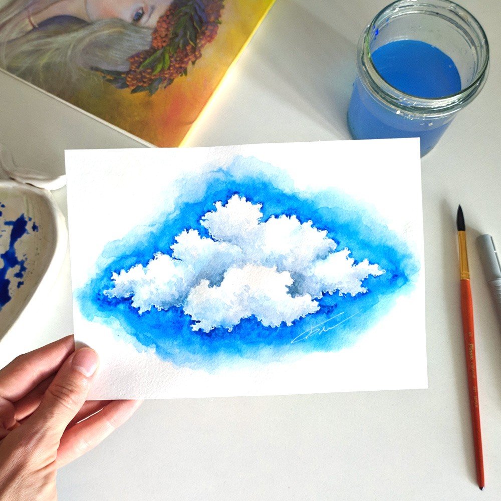 ![Рисование облаков акрилом]()