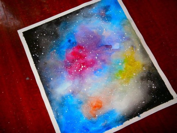 ![Рисование космоса акварелью]()