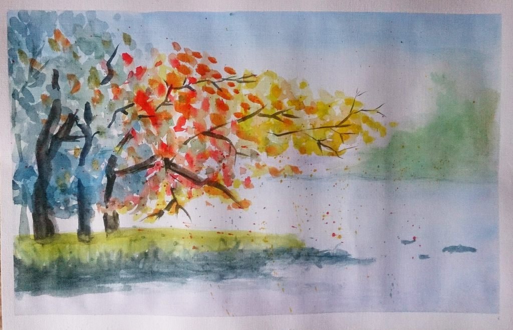 Рисование осеннего пейзажа акварелью