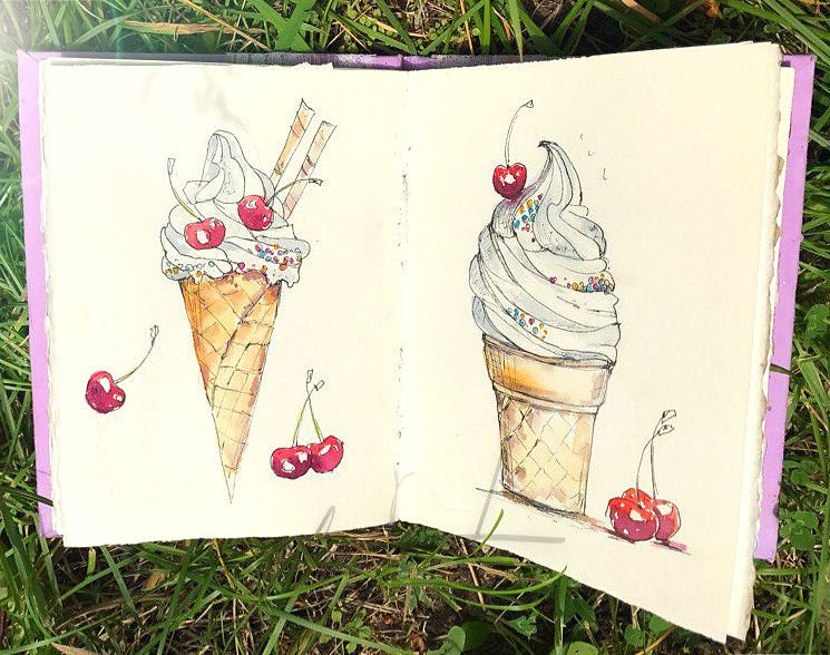![Рисунок мороженого в скетчбуке]()